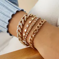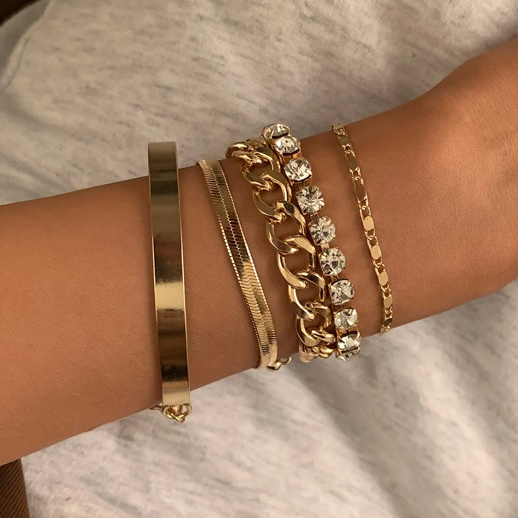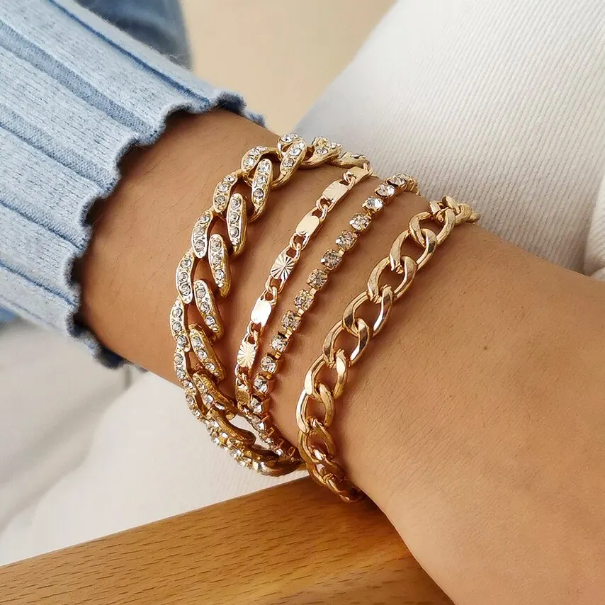 Punk Heavy Metal Rhinestone Chain Bracelets Set for Women Adjustable Crystal Pulseras Bangles Hand Jewelry Gift Steampunk Men