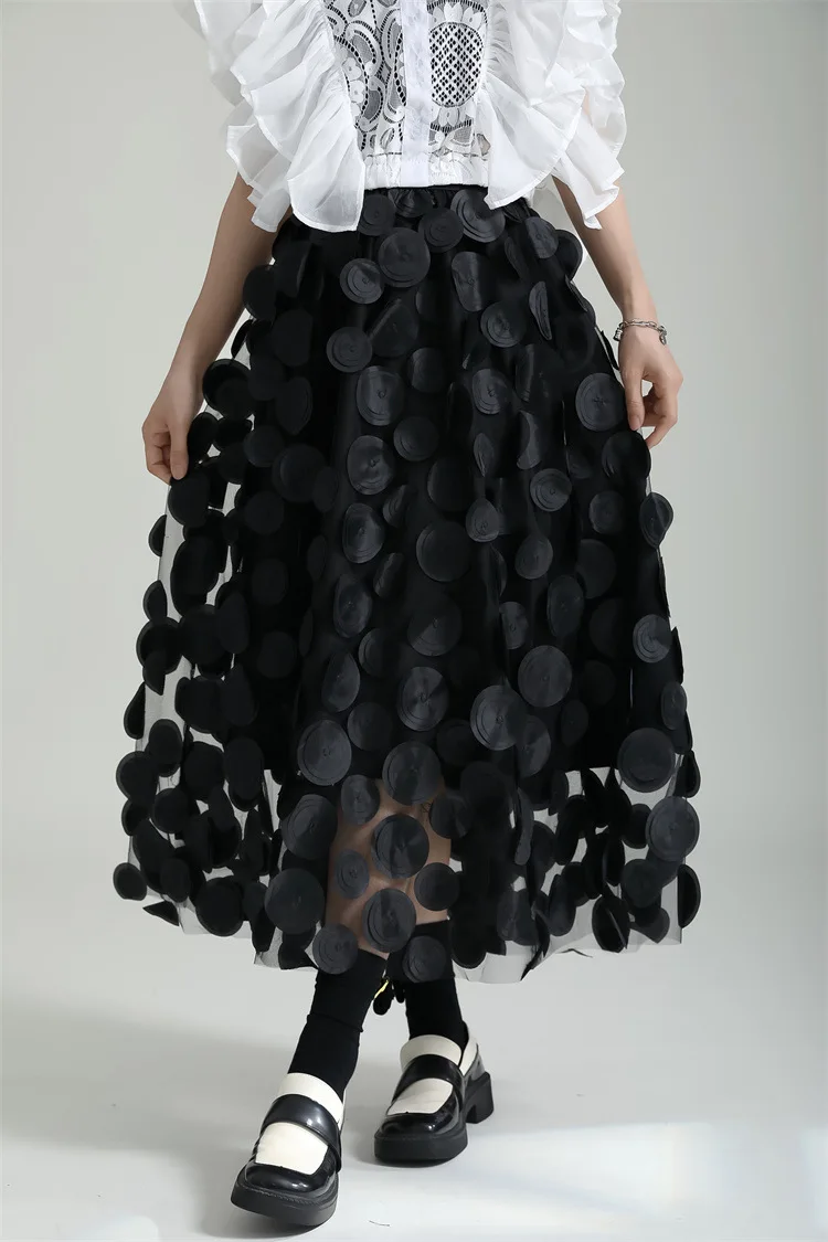 Punk Style 10 Colors Polka Dot Tulle Skirt Elastic Waist Long A-line Tutu Skirt