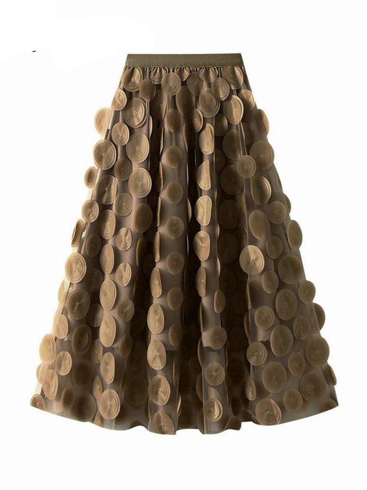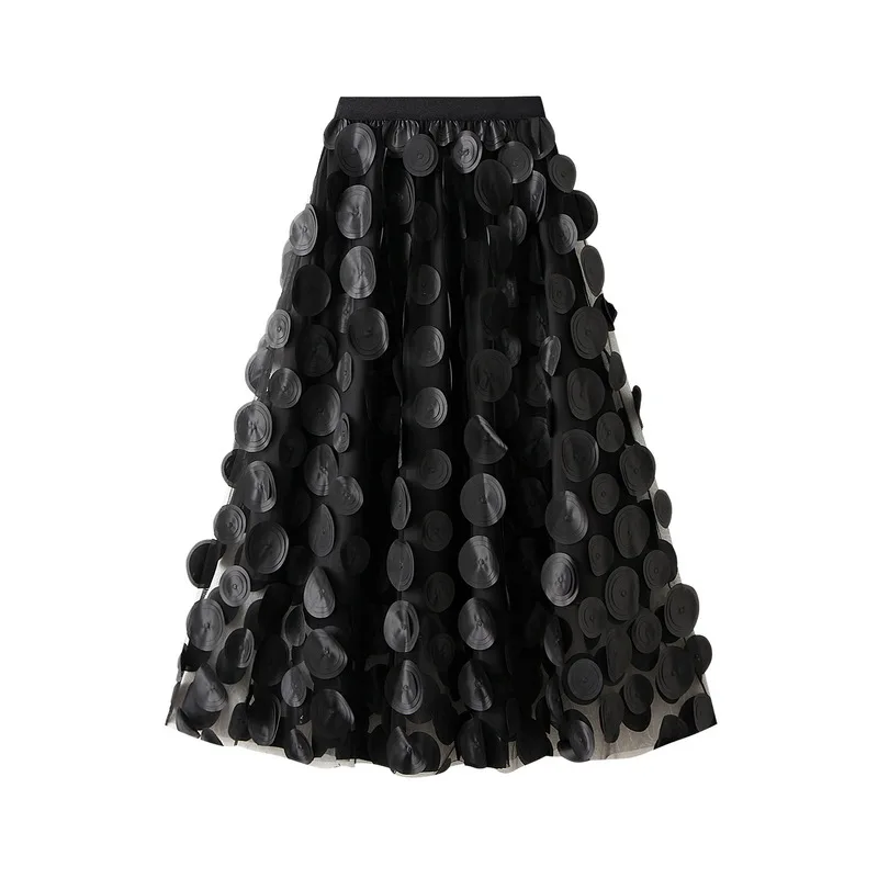 Elegant Tulle Skirts Women High Waist Gradient Mesh Pleated Midi Skirt Korean Elastic Loose Casual All Match A Line Skirt