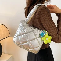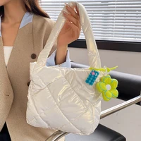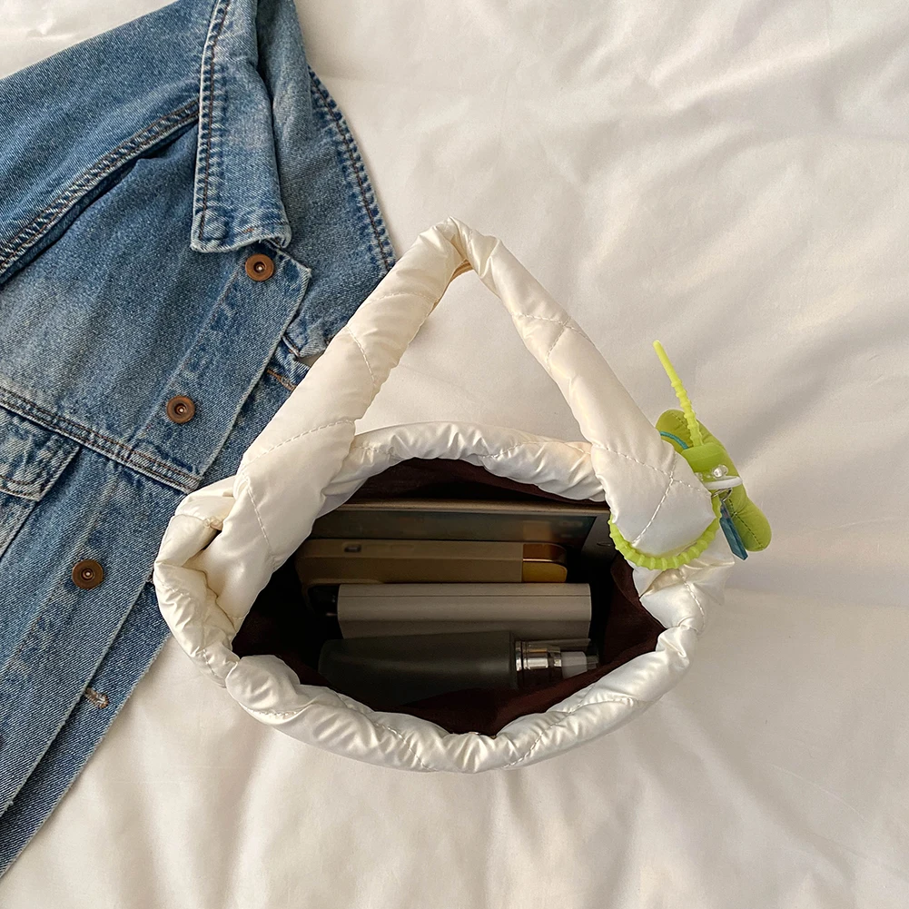 Quilted Top Handle Bag for Women Puffer Handbags Puffy Shoulder Bag Winter Cotton Padded Shopping Bag Ladies Purse Commute Bag