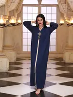 Ramadan Eid Blue Abaya Dubai Turkey Islam Hijab Muslim Dress Kaftan Robe Longue Femme Kebaya African Dresses For Women Caftan