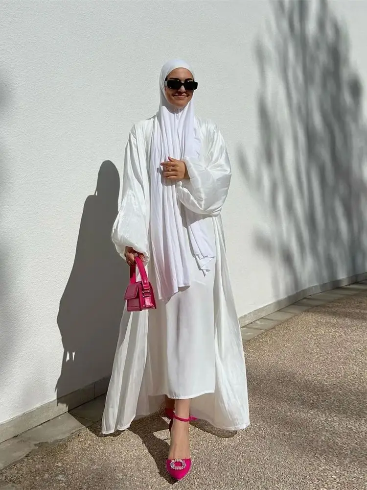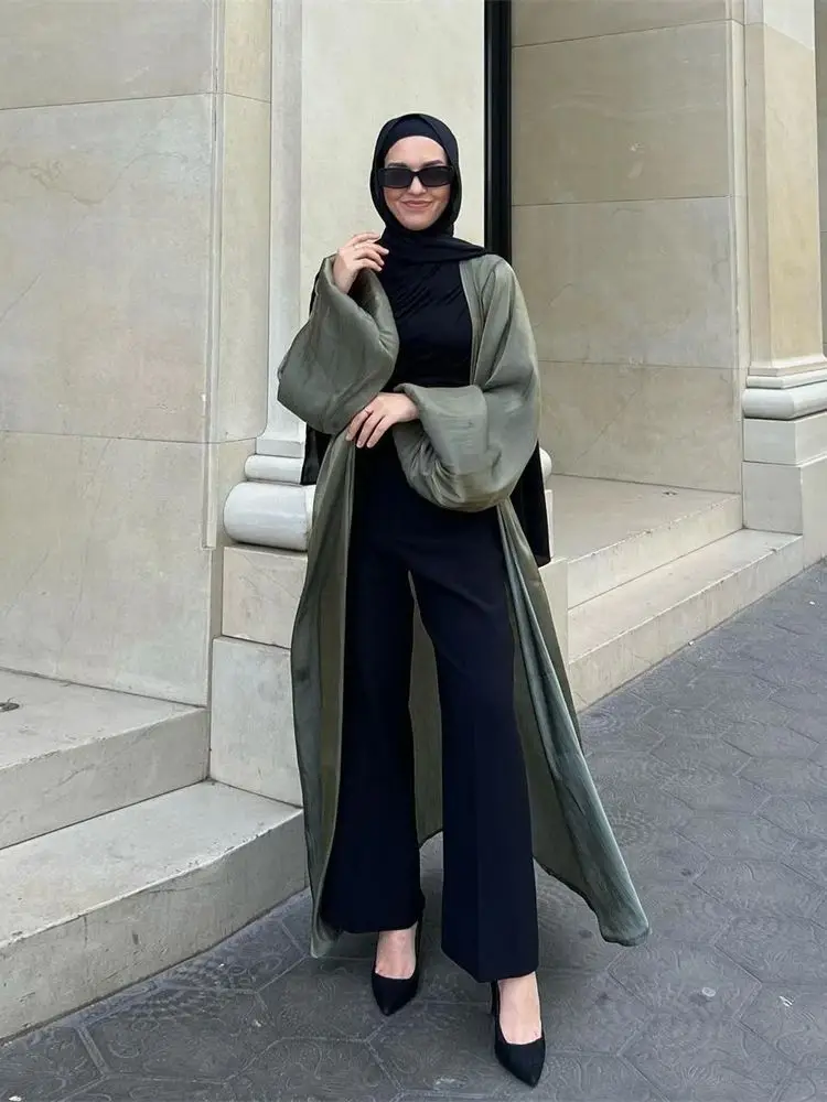 kebaya Ramadan Elegant Solid Two-piece Set Dress, Open Front Coverup and Tie Waist Abayas Outfits, Islam Women's Clothing