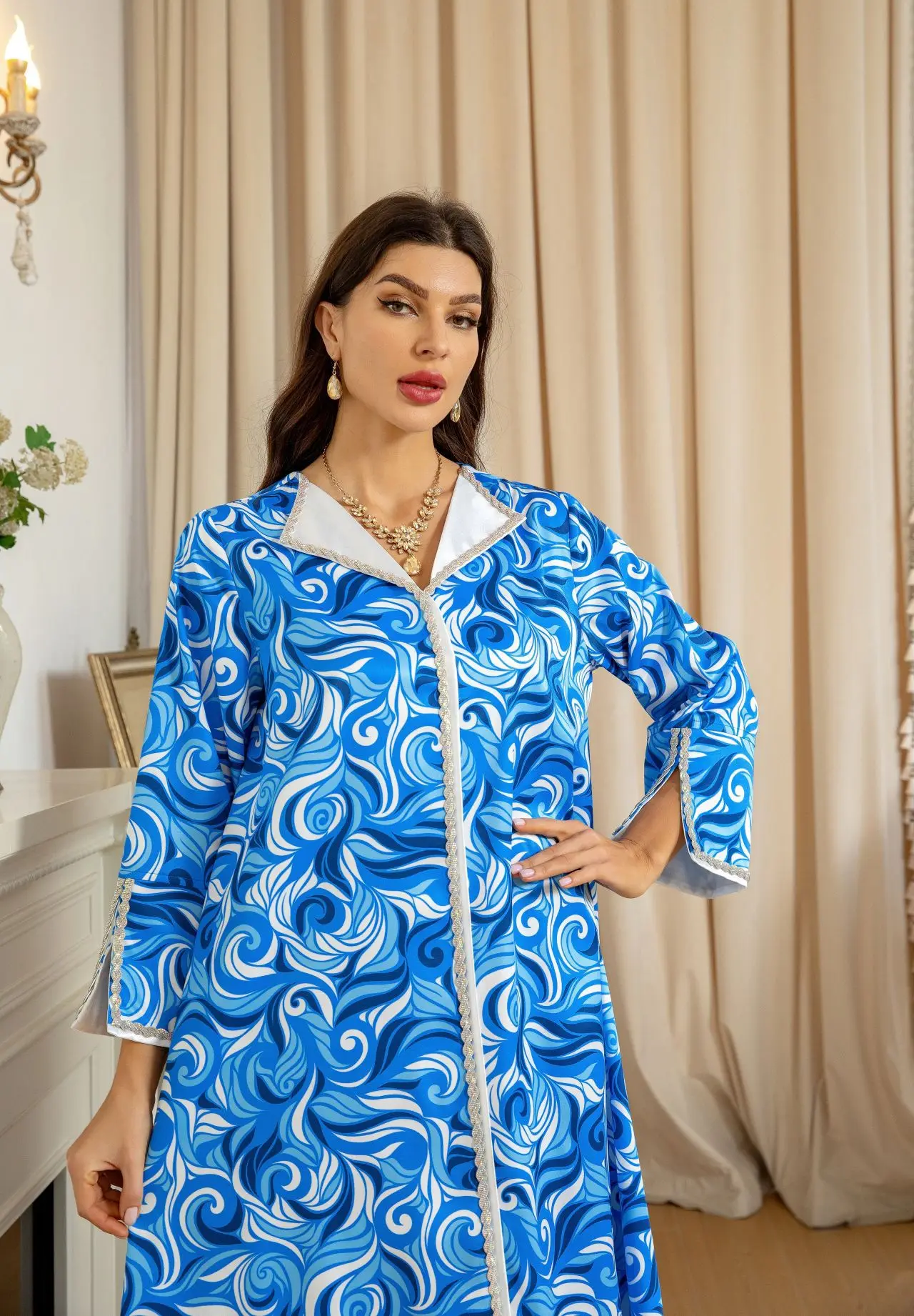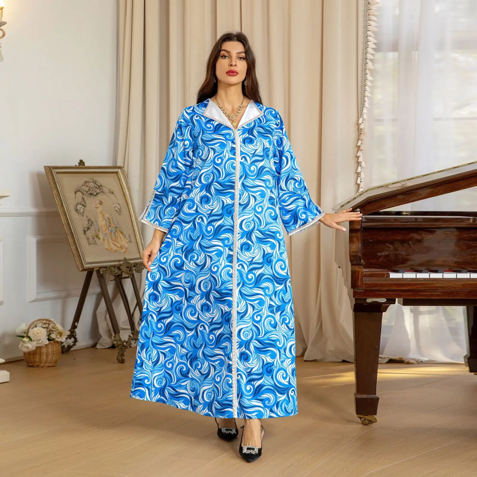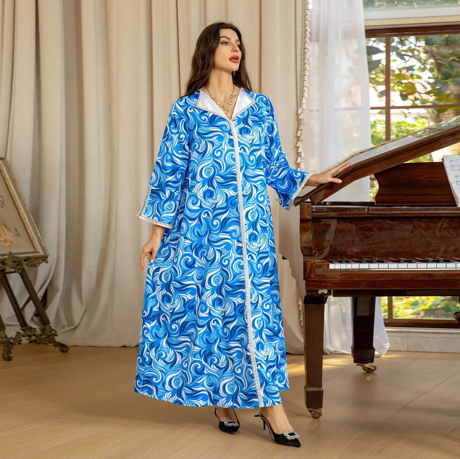 Ramadan Khimar Abaya Saudi Arabia Turkey Islam Muslim Blue and white blue hot diamond dress Kebaya Robe Femme Musulmane