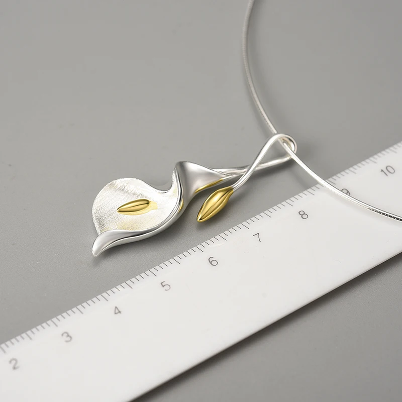Real 925 Sterling Silver Chains New Calla Lily Flower Pendant Necklace for Women Gift Luxury High Quality Fine Jewelry