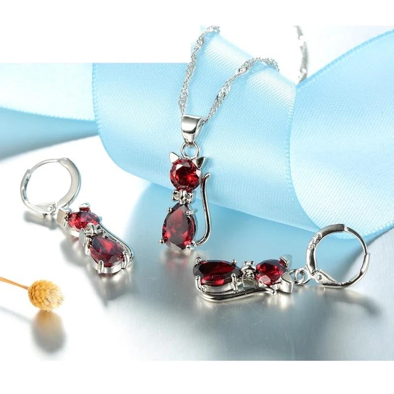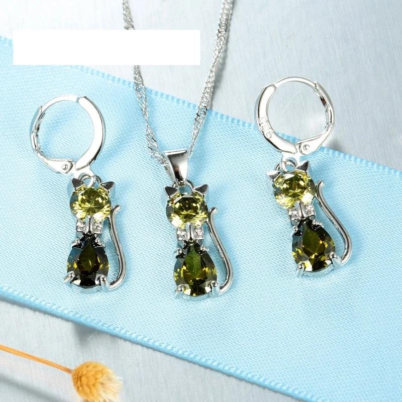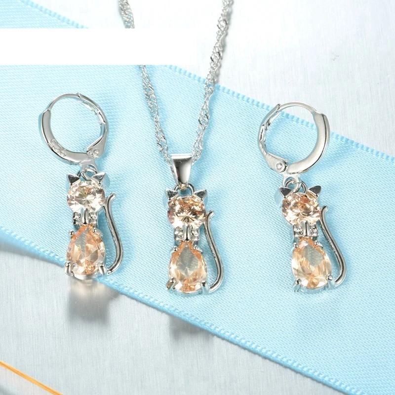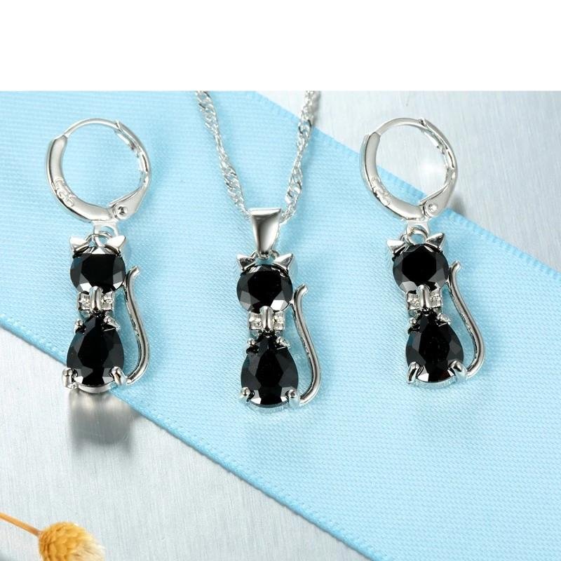 Be the first to review “Real 925 Sterling Silver Color Jewelry Sets for Woman Girls Shining Austrian Crystal Cute Cat Pendant Necklace Huggie Earring” Cancel reply