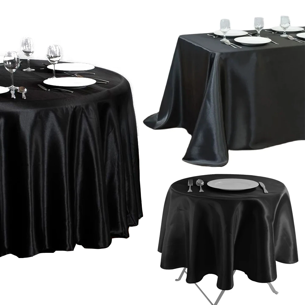 Rectangle Black Satin Tablecloth Wedding Party Round Table Cloth Decoration Home Banquet Cover Restaurant Dinner Table Decor