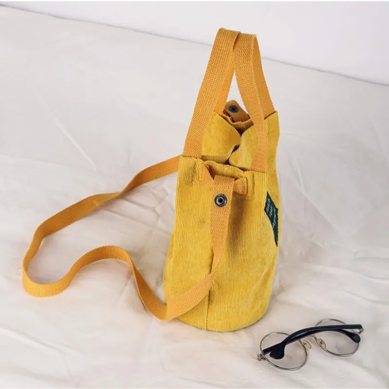 Retro Corduroy Canvas Simple Solid Color Literary Shoulder Original Bucket Cloth Bag