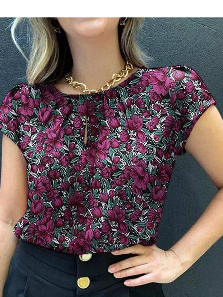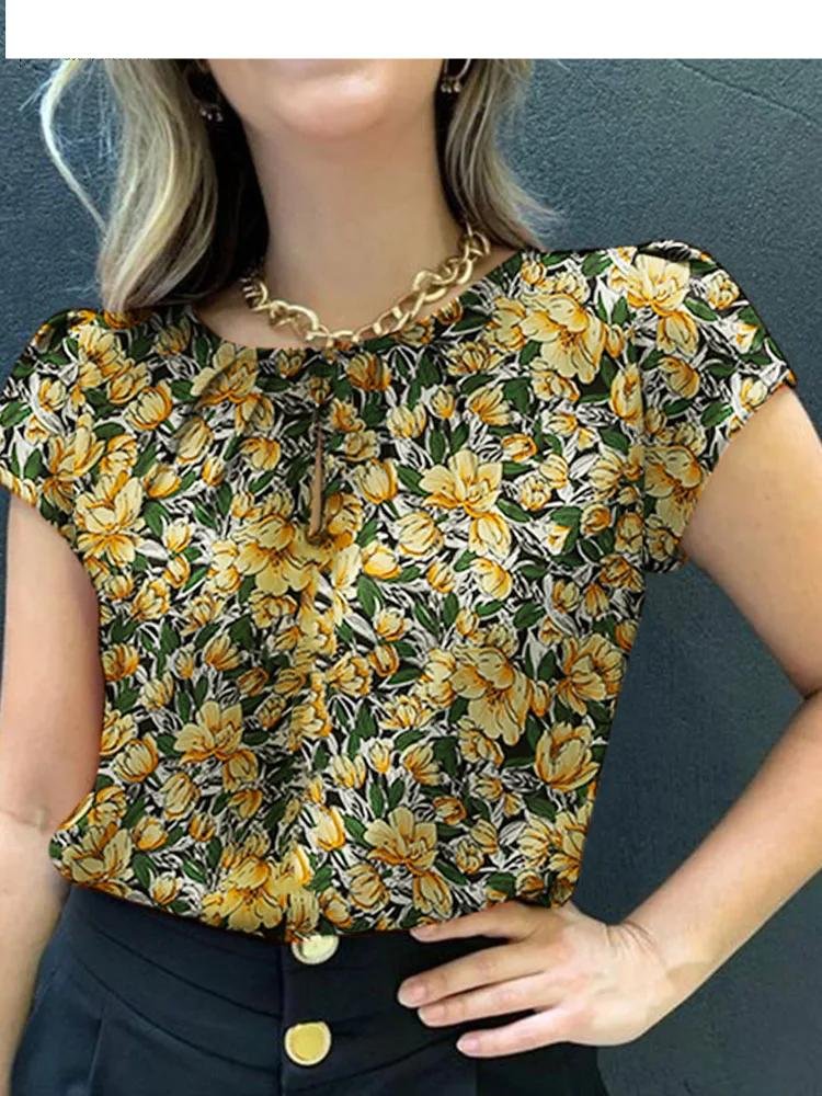 Retro Printed Blouse Women Stylish Shirt Summer Tunic Tops Short Sleeve Beach Party Blusas Bohemian Causal O Neck Chemise