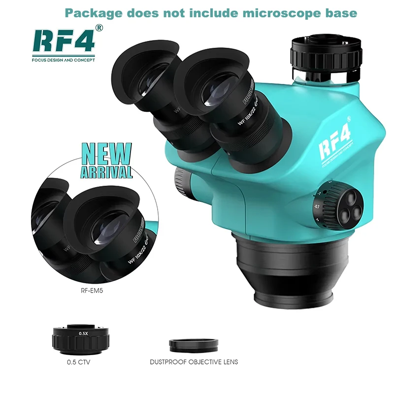 RF4 7-50X Trinocular Continuous Zoom Stereo Microscope WF,10X, 22mm Eyepiece Suitable for Mobile Phone PCB Welding Microscope Tool