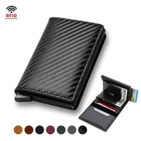 RFID Aluminium Men Wallet Card Holders Purse Carbon Fiber Men Business Slim Thin Smart Wallet Credit Cardholder Case Note Holder