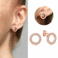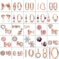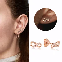 Rose Gold Plated 925 Silver Heart Stud Earring Sparkling Infinity Stud Earrings Original For Women Gift Fine Jewelry