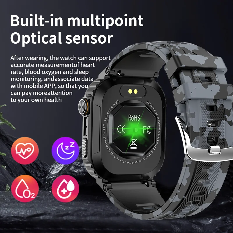Rugged And Durable Military Smart Watch Ip68, Waterproof 2.01”, HD Display Bluetooth Voice Smart Watch for Android, IOS, XIAOMI