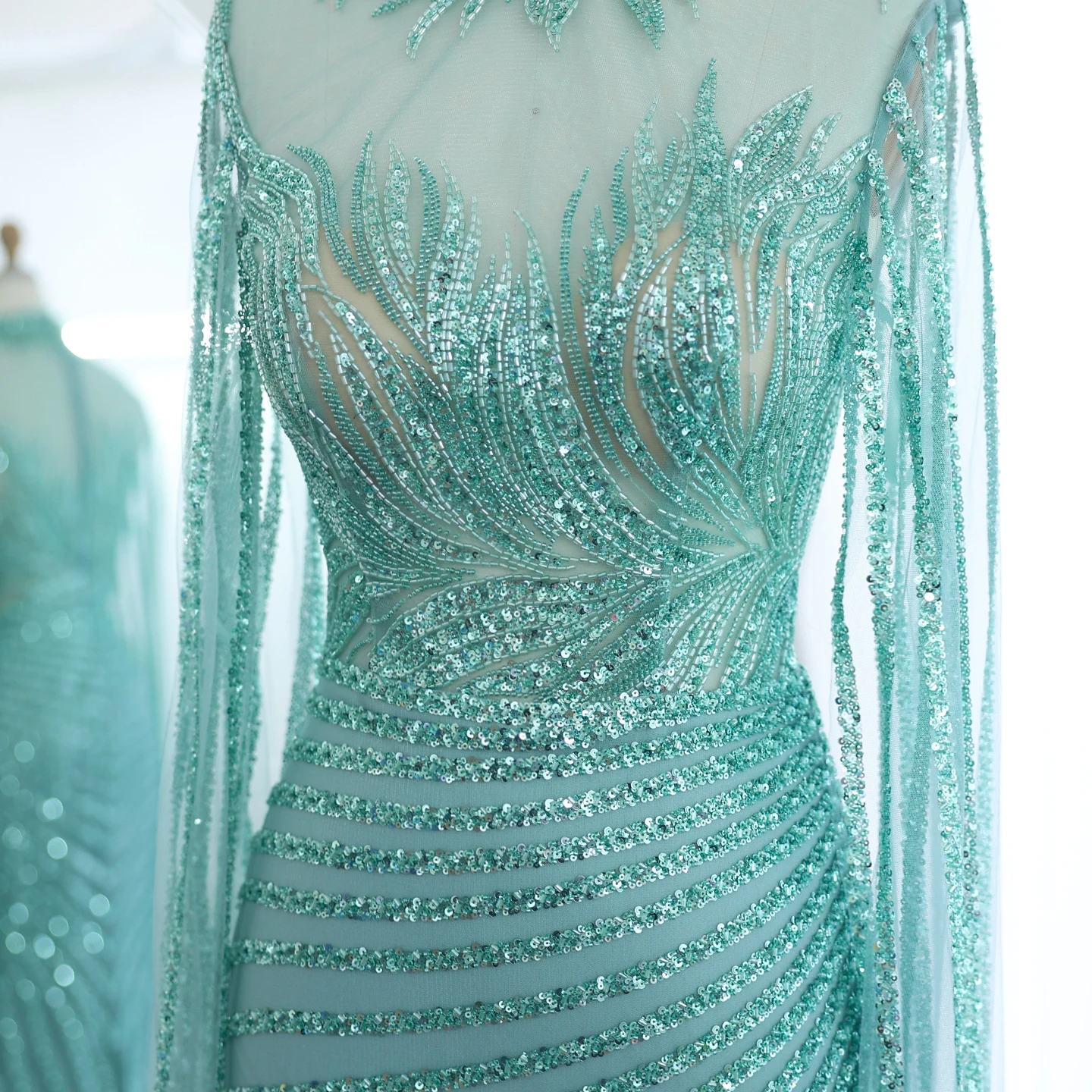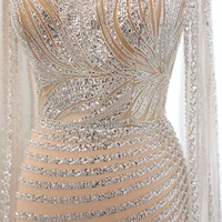 Dubai Mermaid Beaded Luxury Blue Muslim Evening Dresses Gowns with Detachable Skirt for Women Party