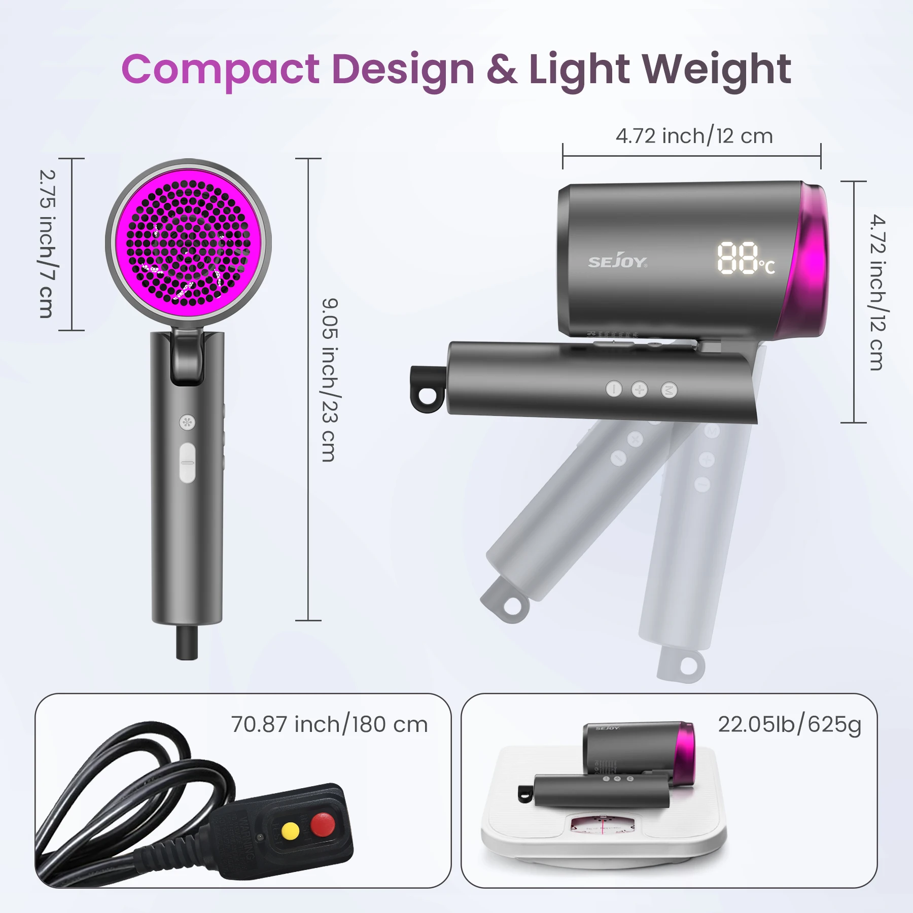 • Portable Design :Featuring an unfoldable handle, this hair dryer is portable and easy to carry around.