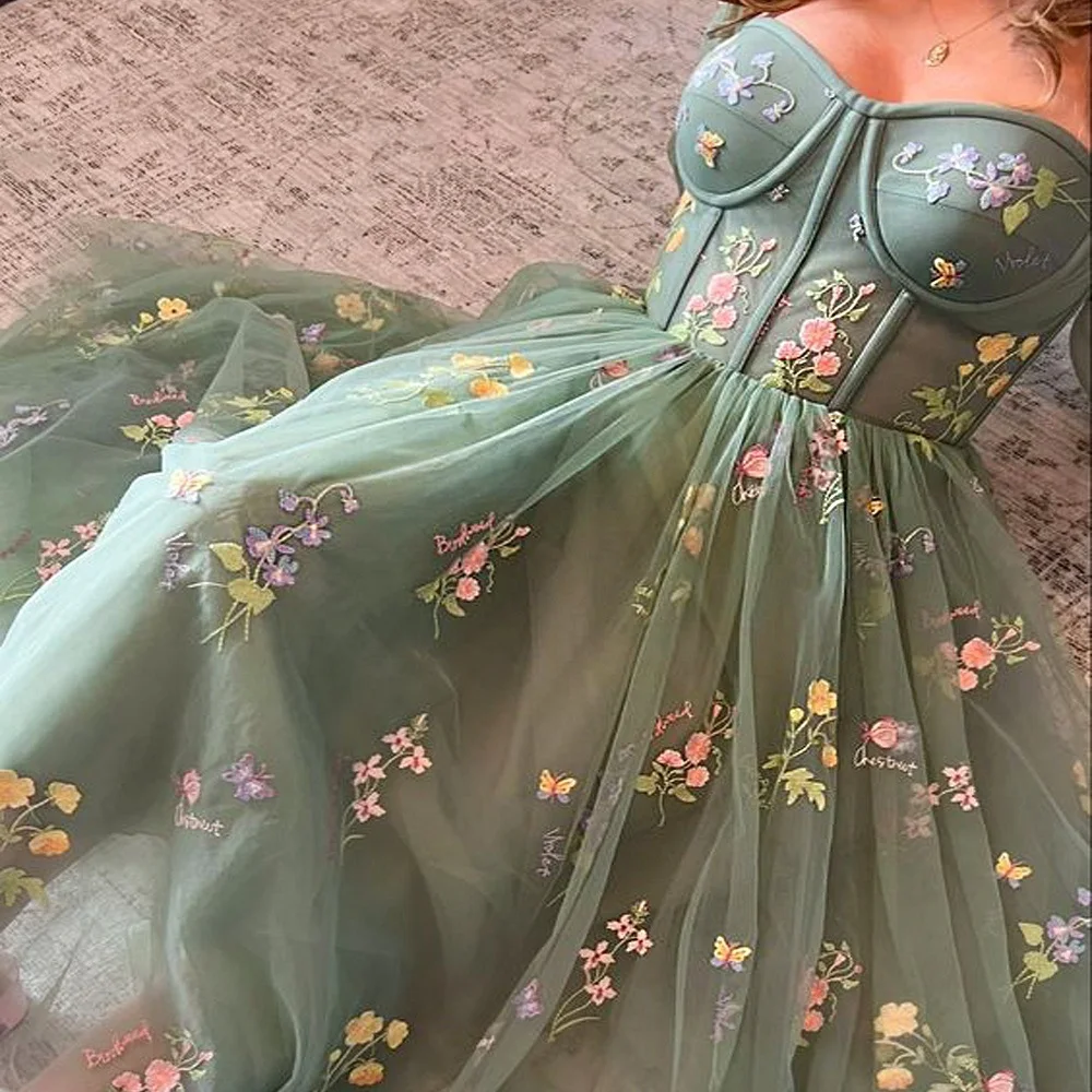 Sexy V Neck Prom Dresses For Women Party Wedding Floral Embroidered Evening Formal Occasion Dresses Vestidos Prom
