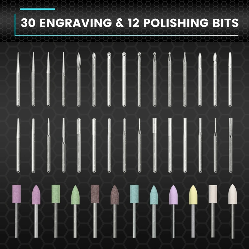 SGS ULTRA comes with aluminum alloy storage box, which is convenient for storage and management of all accessories. Containing 12 polishing bits and 30 engraving bits. The parts are CNC precision machined, so that every work can be precise and agile!