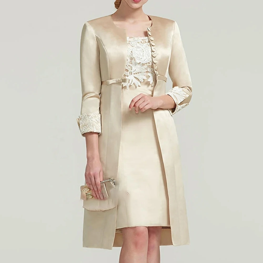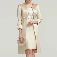 Short Mother of the Bride/Groom Dresses With Jacket Set Champagne 3/4 Sleeves Outfit Vintage Formal Wedding Party Gowns Madrinha