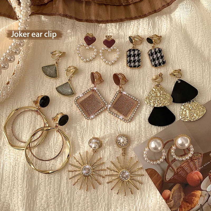Simple Female Ear Clip Without Ear Hole Retro and Versatile Temperament Advanced Sense Minority Design Sense Pearl Earrings