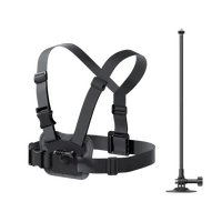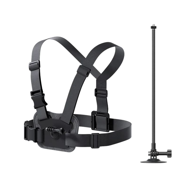 4. The Chest Strap cannot be connected to a selfie stick or extension. The Helmet Extension Rod can only be mounted to a helmet with the Flexible Adhesive Mount included in this kit.