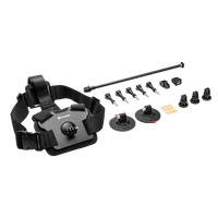 - Includes Chest Strap, Helmet Extension Rod, Flexible Adhesive Mounts, and Mounting Parts.