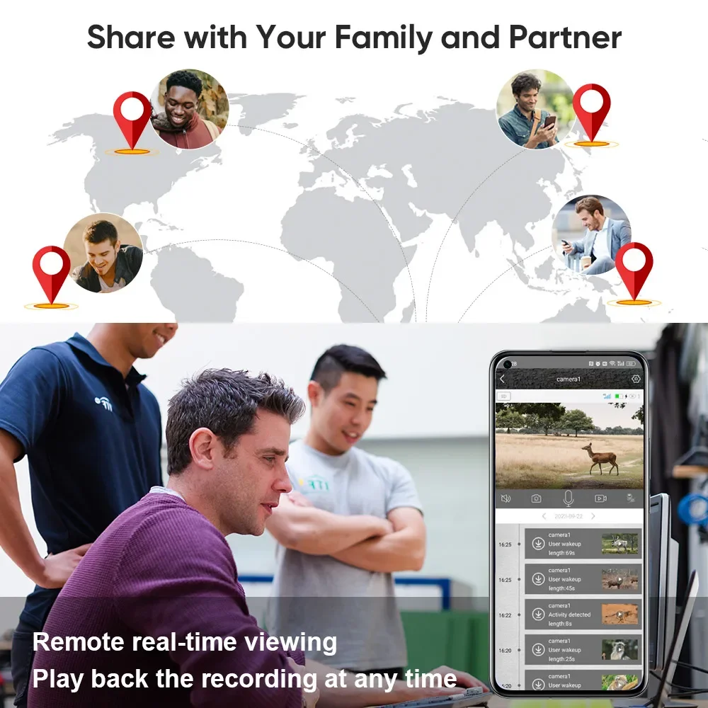 Solar Hunting Trail Camera 14MP 4G SIM Card IP66 Waterproof 20M PIR Motion Detection Wildlife Camera IR Night Vision