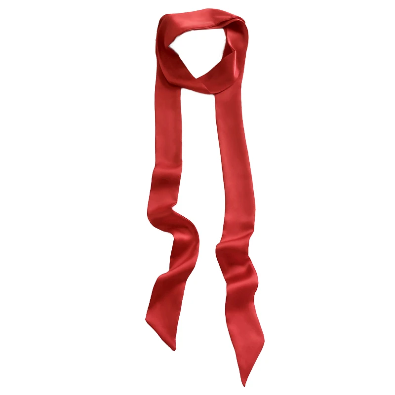 Solid Color Long Silk Skinny Scarf Women Neck Skinny Scarves Hairband Lady Narrow Neckerchief Bag Ribbons Brand Choker Streamer