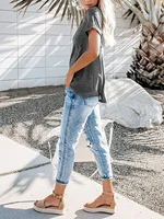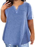 Spring and Summer New Style Top V-neck Short Sleeve Pocket Loose T-shirt Women Plus Size Women Clothing Ladies Tops