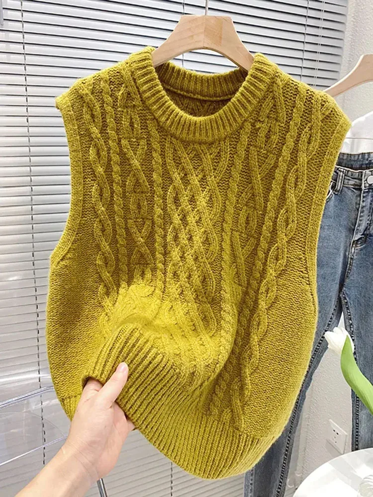 Spring Fall Knit Vest Soft O-neck Pullovers Solid Color Sweater Colete Basic Woman Knitwears Top Korean Sleeveless Chaleco Mujer