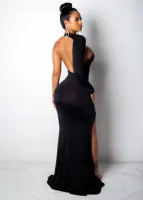 Mesh Double Layer Sexy Skinny Dress Women Sleeveless Party Bodycon, Bandage Elastic Split Trend Clubwear Slim Outfit