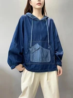 Spring Fashion Denim Hoodies Womens Vintage Hooded Classic Loose Sweatshirts Ladies Harajuku Casual Korean Clothes