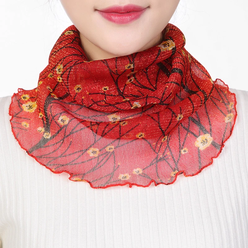 Spring Summer Chiffon Neck Collar Scarf Women Head Thin Sunscreen Variety Small Silk Anti-UV Scarf Mask Multi-Function Scarf