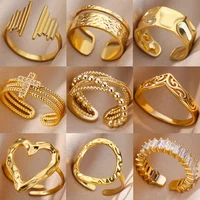Stainless Steel Rings for Women Aesthetic Sunflower Gold Plated Wedding Couple Ring Jewelry Vintage Accessories
