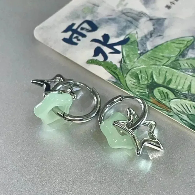 Star Earrings Fashionable Gothic Harajuku Retro Cute Stainless Steel Y2K Moon Imitation Jade Earrings Girls Aesthetic Jewelry