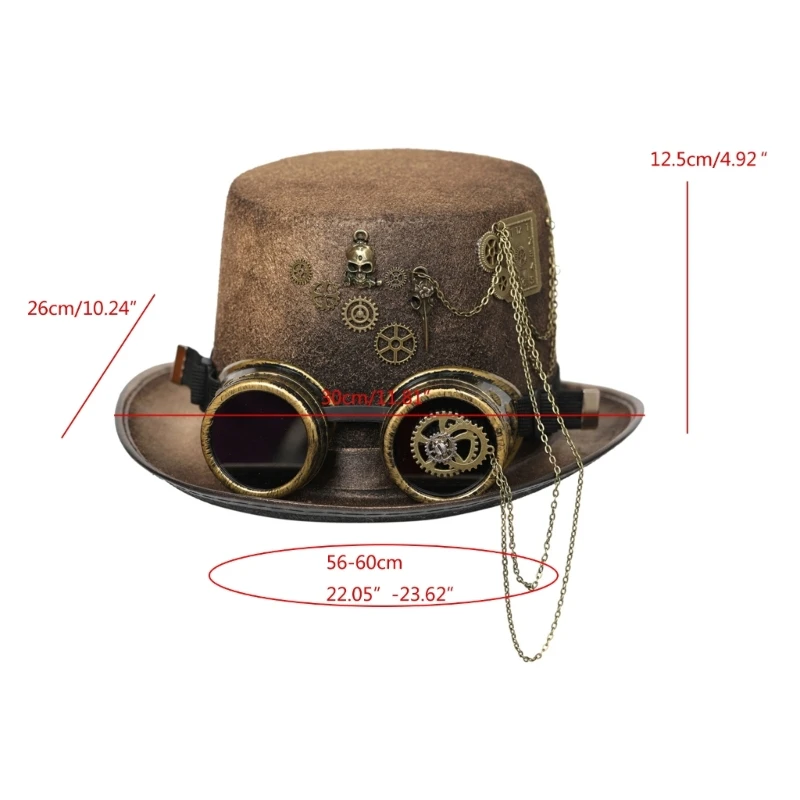 steampunk top hat With Goggles, gay top hat fit for Halloween ,gay party, dance props, Steampunk features such as Goggles, retro gothic clock, Gear, metal skull, Chain