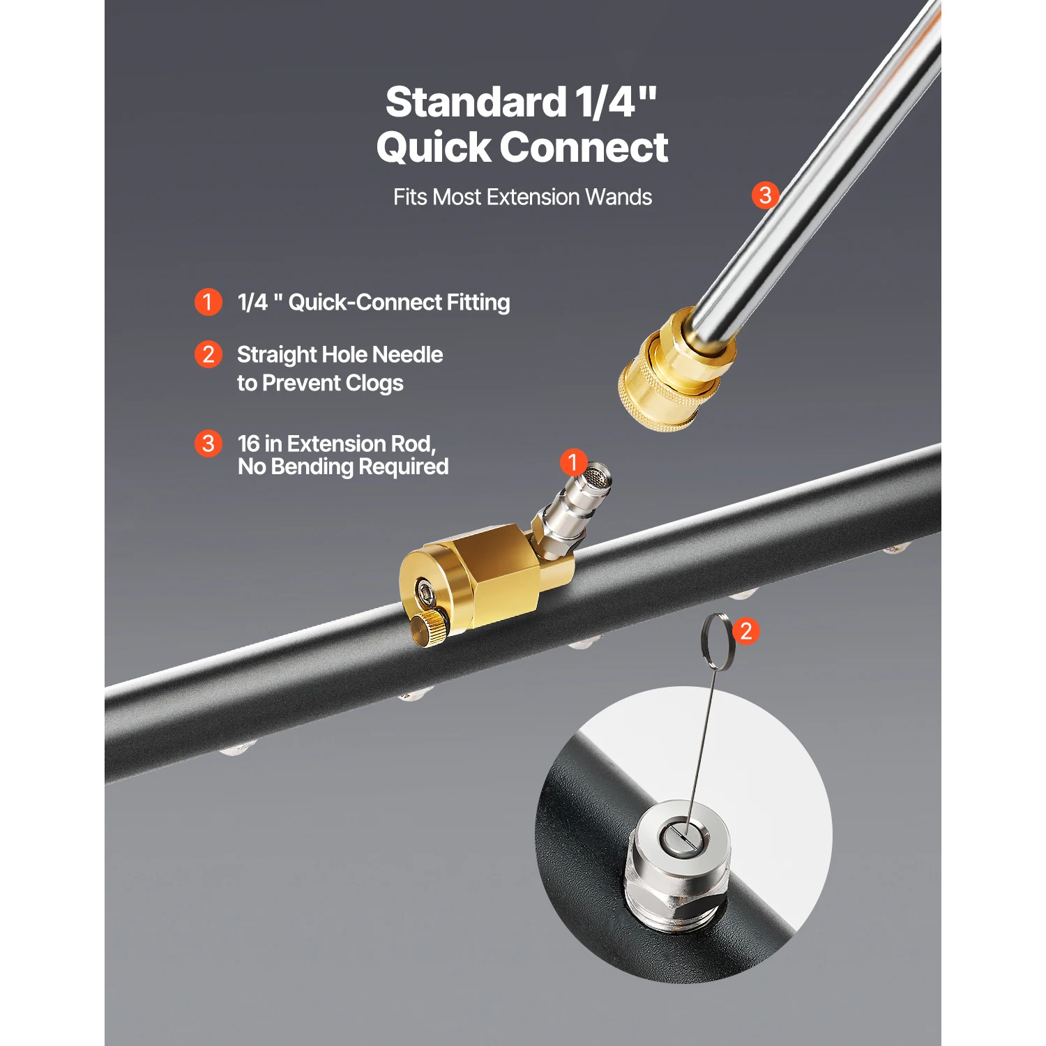 - 1/4″ Quick Connect: Equipped with a standard 1/4-inch quick connect for seamless attachment. The connector is durable and secure, and won’t come loose. The 16-inch extension rod lets you clean without bending over, making the task more comfortable.