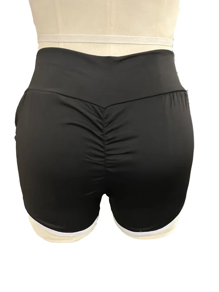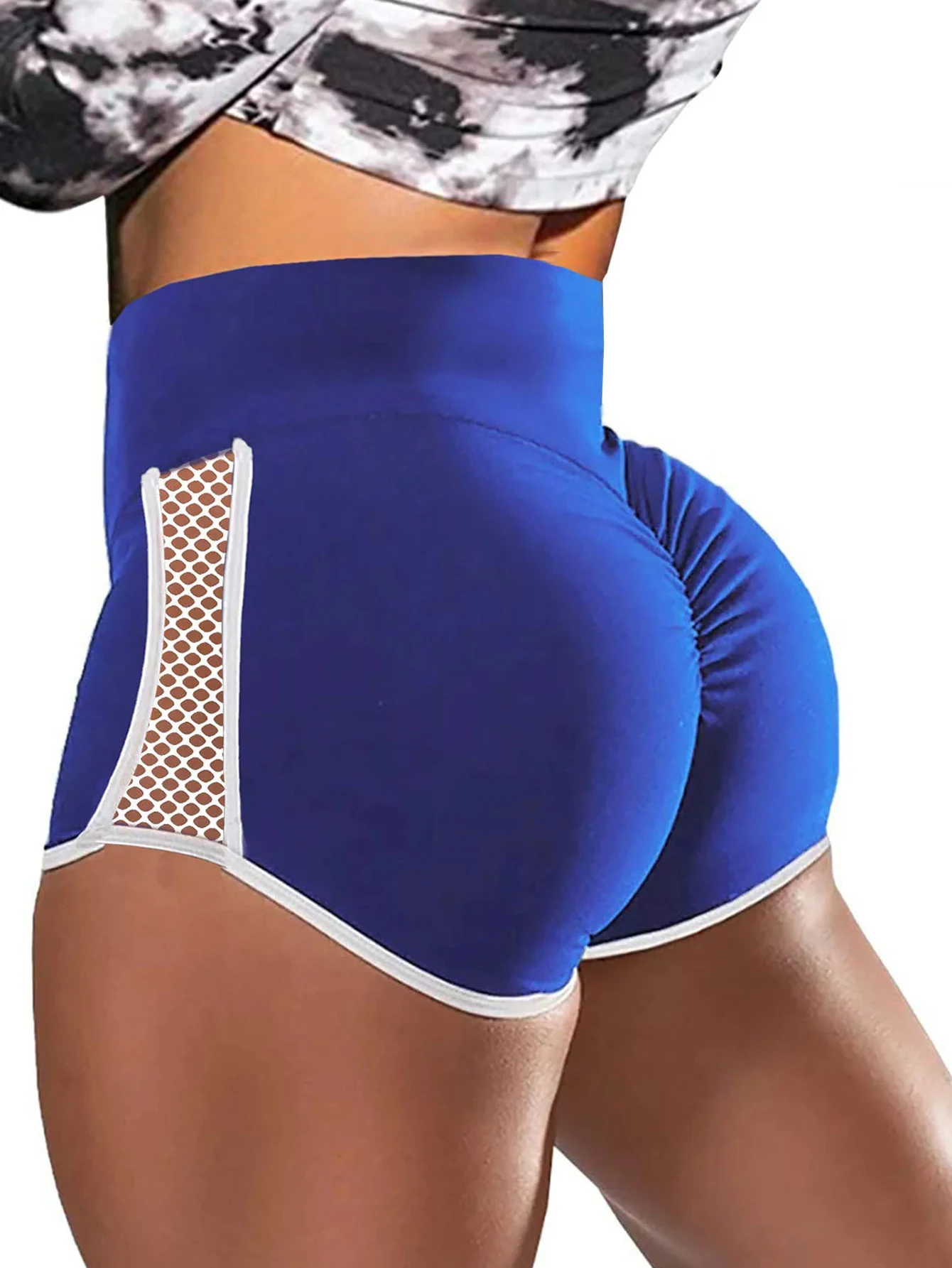 Summer High Waist Side Hollow Out Sport Shorts Women Stitching Stretchy Trousers Slim Fit Short Pants Run Exercise Yoga