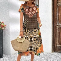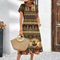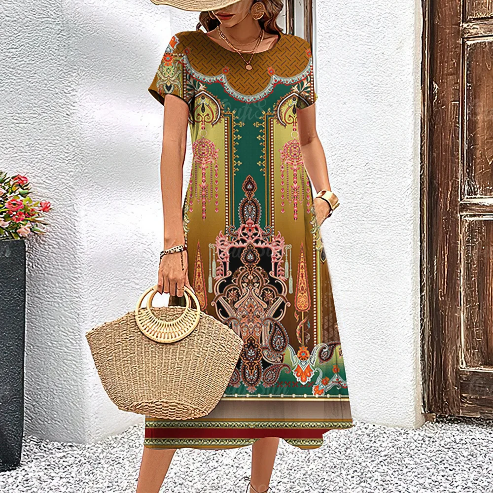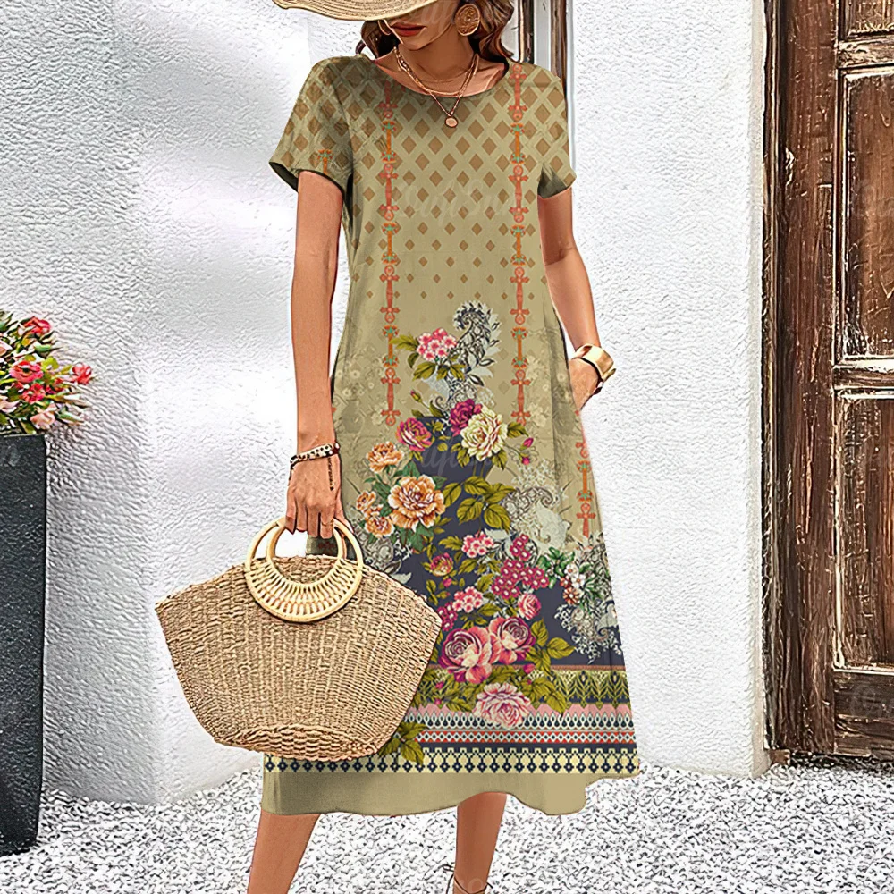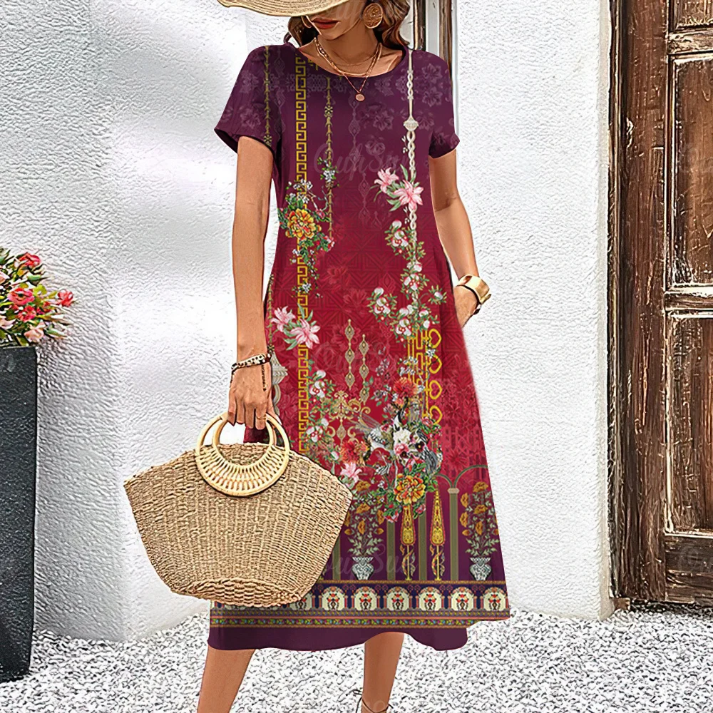 Fashion Elegant Casual Dress Woman Short Sleeve Loose Dress Woman Temperament Holiday Printed Dresses