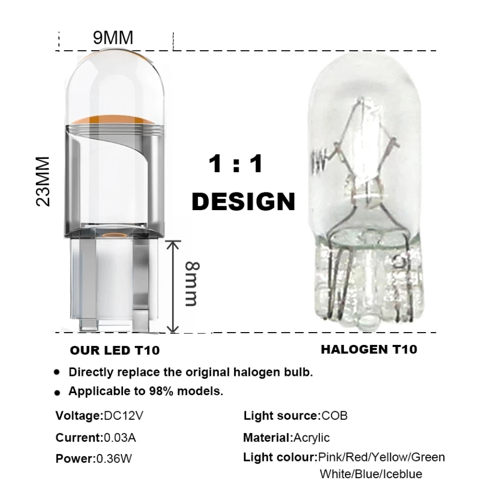 Super Bright 10 Pcs, W5W, 194, T10 LED Glass Housing Cob Car Signal Lights Bulb 6000K Wedge License Plate Lamp Dome Read DRL Bulb