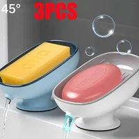 Soap Holder Drain Water Soap Dish Leaf Shape Soap Box Shower Soap Drainer Suction Cup Soap Container Modern Bathroom Accessories