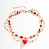 Sweet Imitation Pearl Strawberry Pendant Choker Necklace for Women Korean Fashion Love Heart Beaded Clavicle Chain Y2K Jewelry