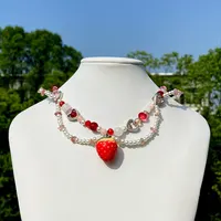 Imitation pearl and strawberry pendant :The imitation pearl and strawberry pendant on this necklace is a unique and eye-catching design.