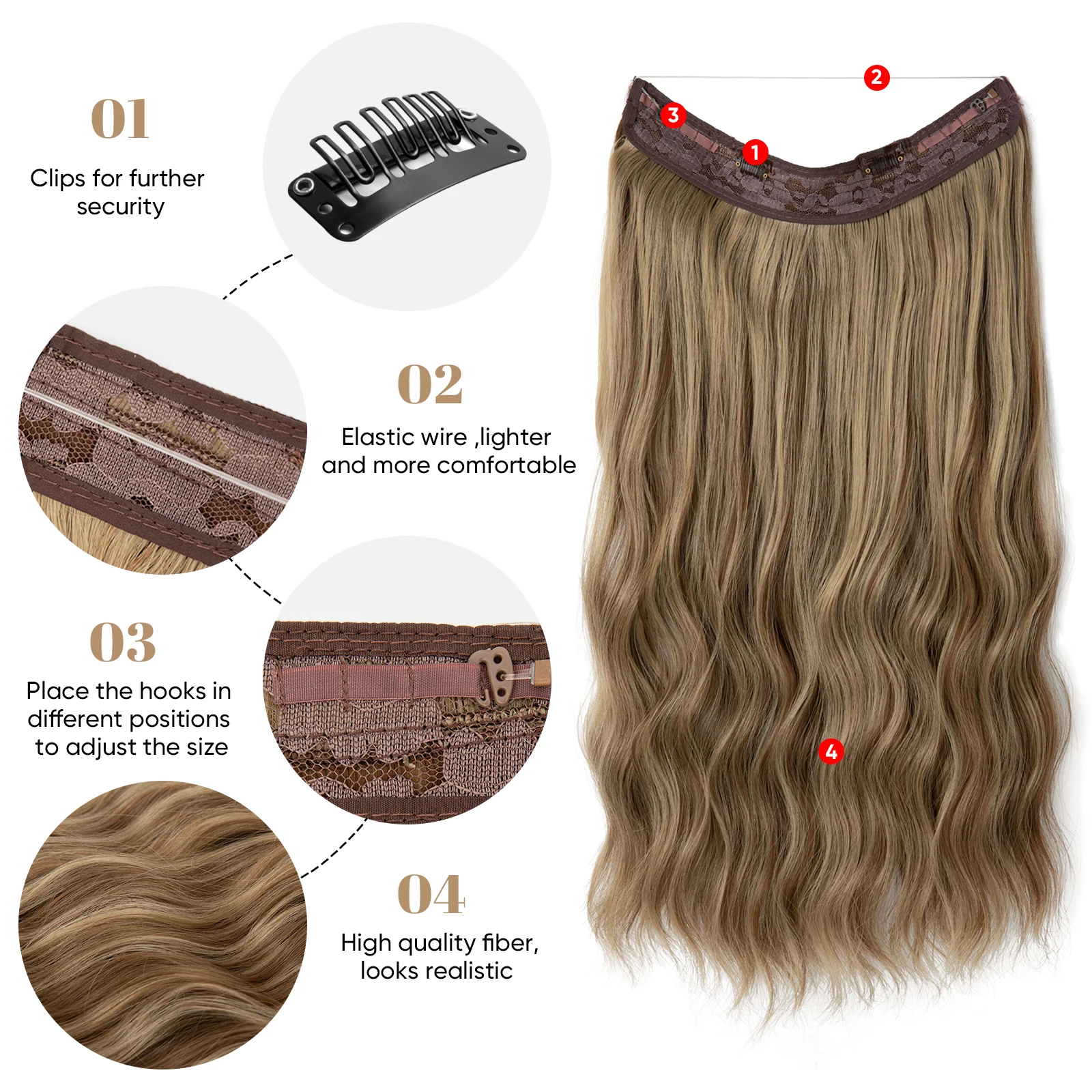 Synthetic Wave Invisible Clip in Hair Extensions Fish Line Ombre Natural Black Blonde Pink One Piece Hairpiece Fake Hair Piece