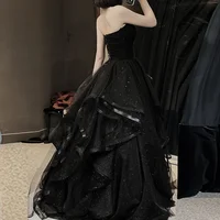Temperament Black Elegant Wedding Party Dresses Strapless Tiered Draped Prom Robe New Ball Gown Formal Dress Women Vestidos