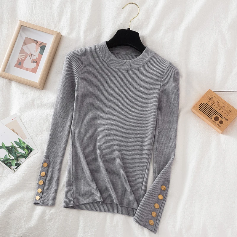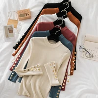 Thick Sweater Long Sleeve Pullover Autumn Winter Clothes Button O Neck Sweater Female Casual Streetwear Knitted Top Soft Jumper