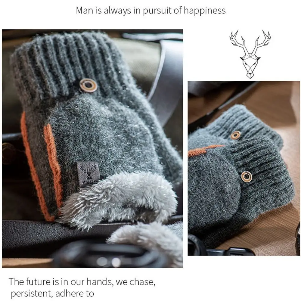 Thickened Plush Fluffy Cold Proof Autumn Winter Knitting Mittens Half Finger Gloves Touch Screen Gloves Warm Gloves