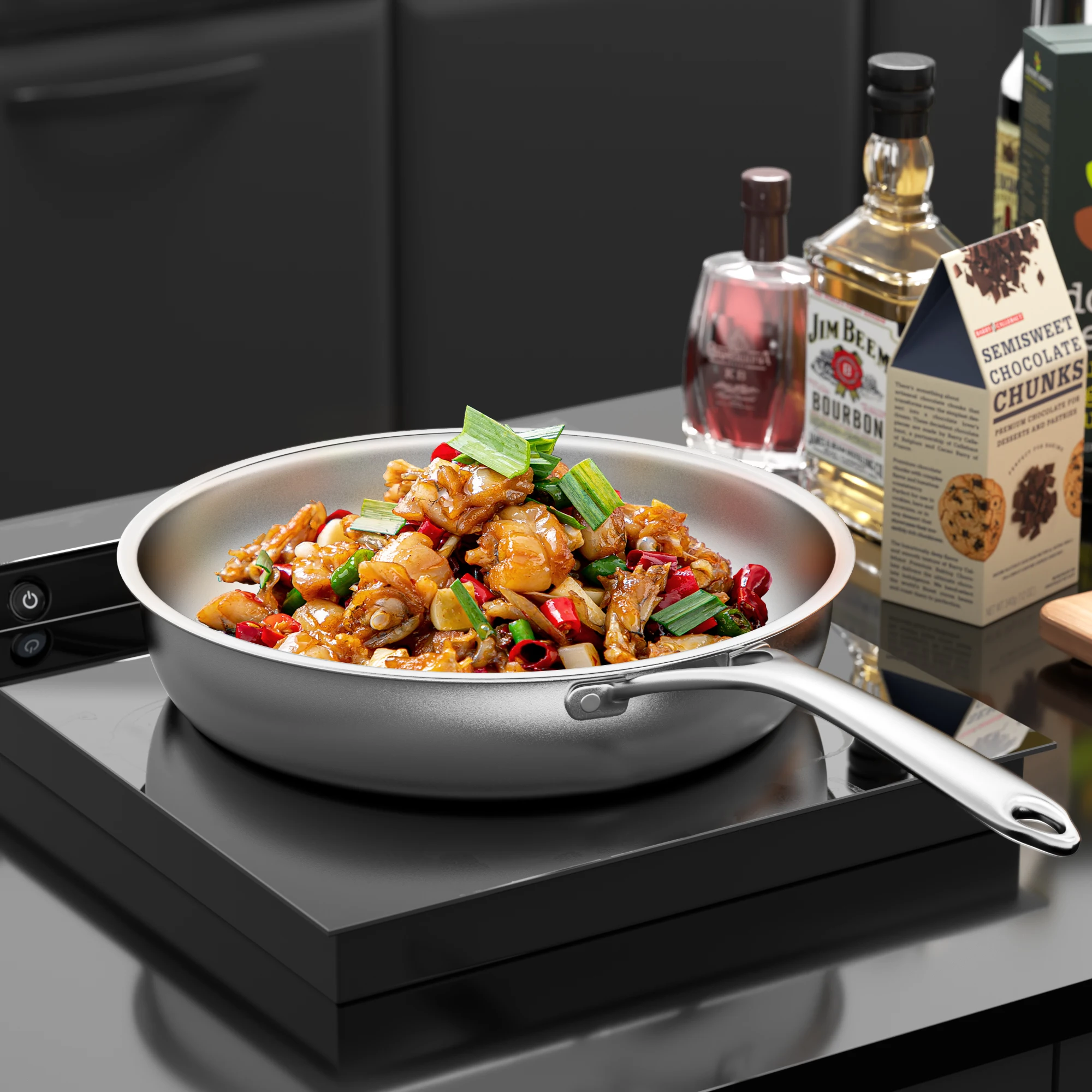 Chinese Wok Stainless Steel Fried Pot Non-coating Pans With Lid Non-stick Cookware For Gas Kitchen Pot