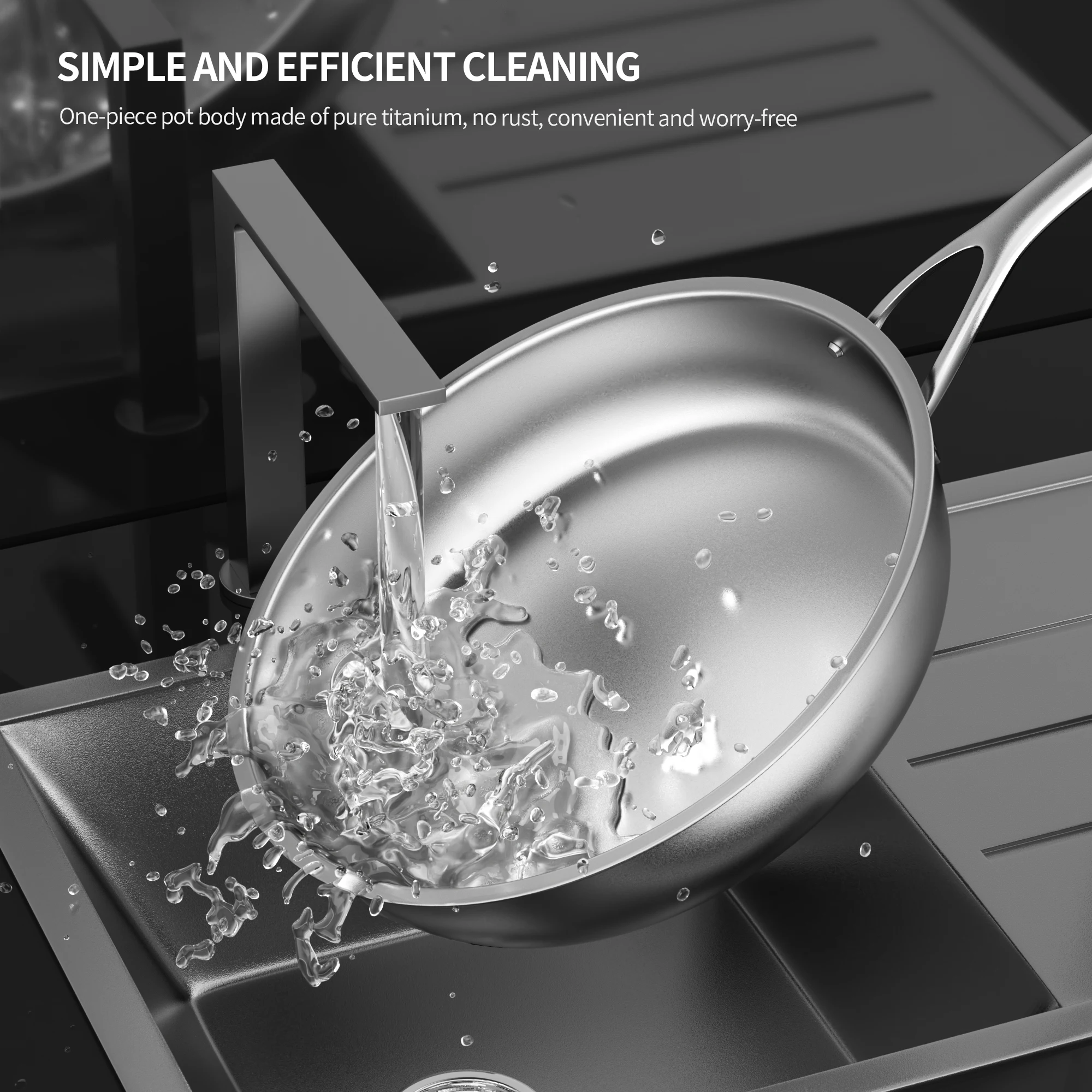 The wok is made from pure (99.7%)Titanium, unlike those iron material, it’s light, very easy for cooker to carry and handle