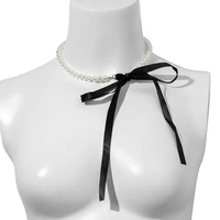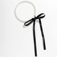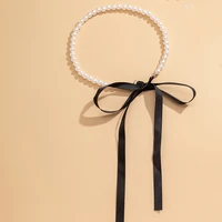 Trend Wedding Party Jewelry Long Black Ribbon Choker Necklace for Women Elegant White Imitation Pearl Beach Vacation Necklaces