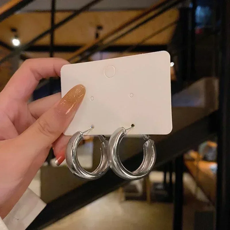 Trendy Simple Silver Color Hoop Earrings for Women Fashion Circle Round Minimalist Earrings Party NEW C-shape Jewelry Gifts