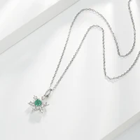 Trendy Snowflake Pendants 100% 925 Sterling Silver Jewelry Women Natural Emerald Necklaces Clavicle Chain Party Jewel Gifts